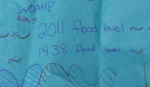 What emerged from the discussion following the graffiti activity was the increased sense of compassion and understanding students have gained through the flood experience. EVERY 8th grade student shared an example of service they had offered the community during the crisis including babysitting at the red cross center so that their parents could help clean out homes and businesses, working at the food bank, shoveling mud from basements, or sheltering neighbors in their homes.
