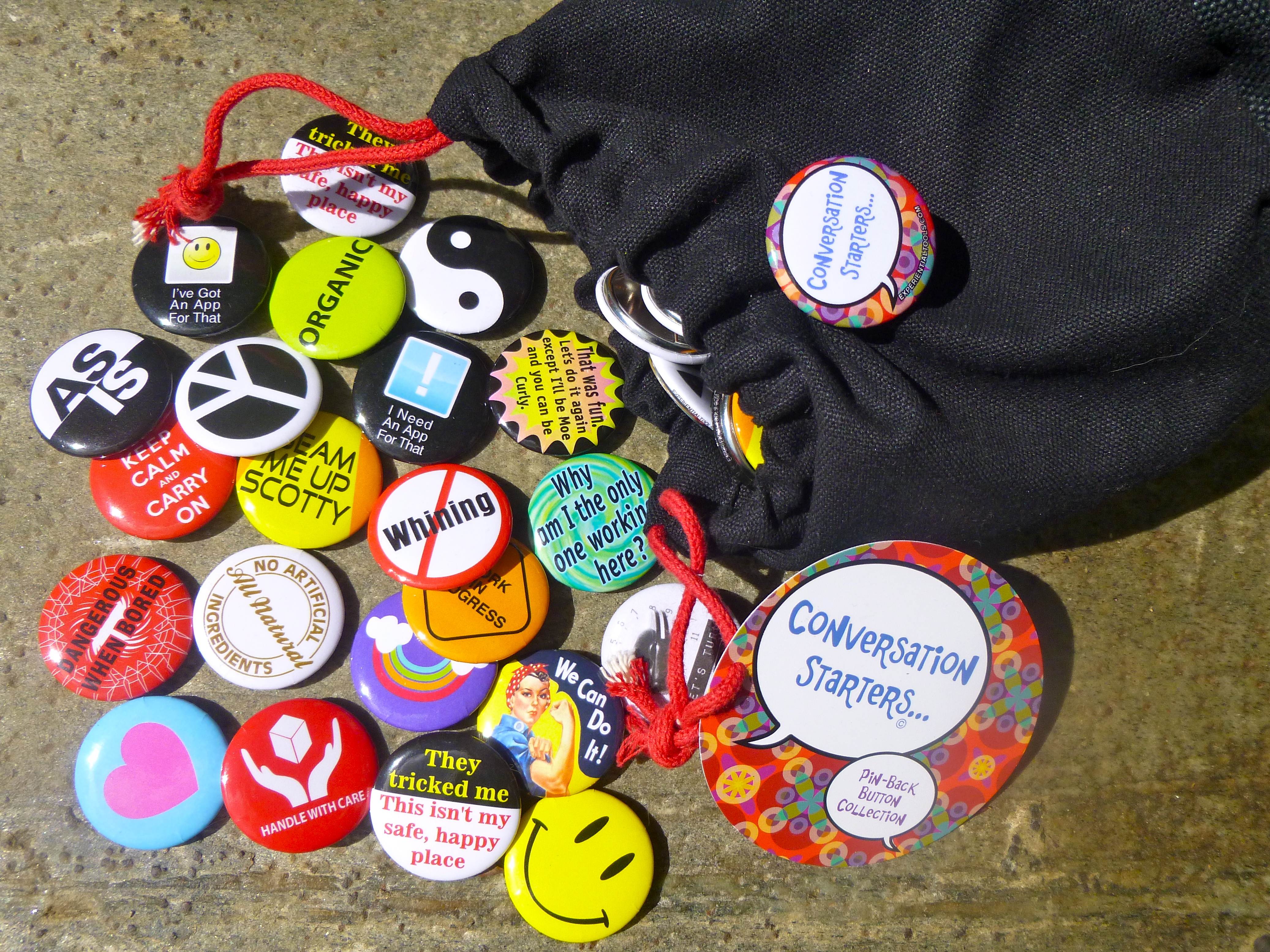 This is one of my “tried and true” activities for engaging educators, college leaders, business groups and other participants in laughter and dialogue together during a professional development session or meeting. I use pin back buttons from my collection of “Conversation Starters” with witty sayings such as “Same old circus different clowns,” “As is,” “Turn it up to 11,” “Keep Calm and Carry On,” or “It’s never too late to learn playground skills.” Lay them out on a table as participants enter for the program or meeting and ask them to choose one that represents their mood or attitude. The buttons are a way to transition into a classroom or workshop space. They also bring humor into group settings where individuals are reluctant to participate, helping them… click here for the full post on the WNB Blog.