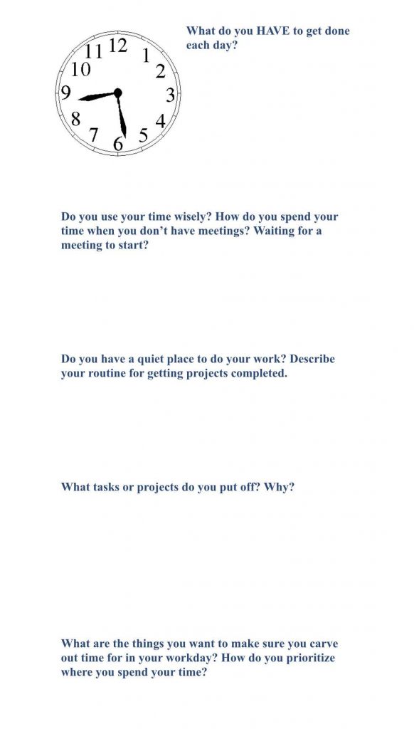 • As an extension of the activity, I often offer a time log worksheet that can be used by participants for a few days to continue reflection on how they are using their time.