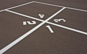 - One player stands in each square, the rest of the class waits in line behind square one to enter a spot.